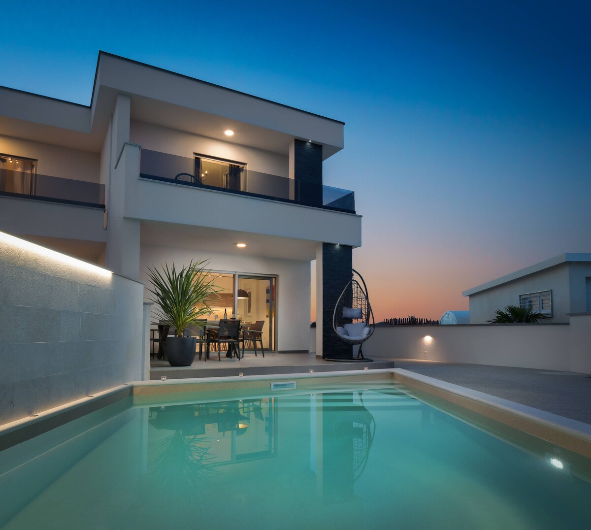 This modern and elegant Villa Beluna is situated in the Vodice, just 3 minutes walk from the beach. Vodice is extremely popular resort, located just 12 km northwest of Šibenik, offers excellent conditions for an unforgettable and active vacation. As the largest tourist center of the region, the city hosts many interesting festivals, fairs and events, but also offers various opportunities for individual sports activities and recreation.