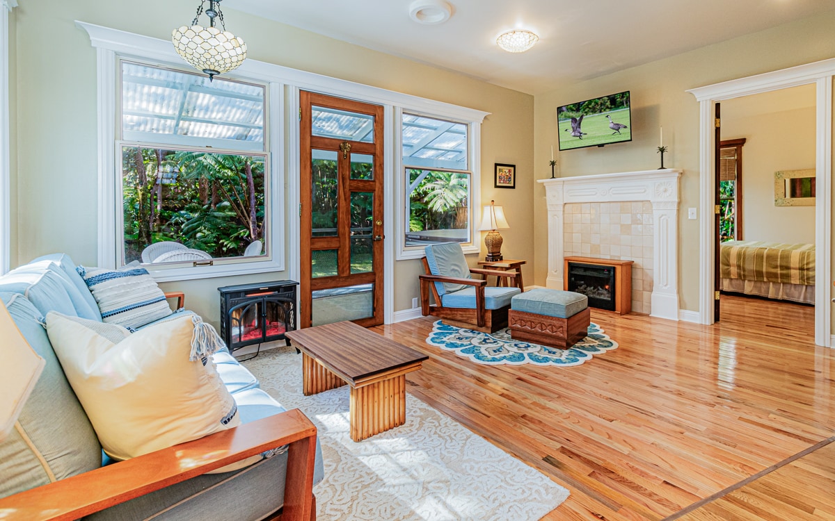 🌺 Apapane Cottage – A Peaceful Rainforest Retreat Near Volcanoes National Park. Tucked away in the lush Hawaiian rainforest just minutes from Hawaiʻi Volcanoes National Park, Apapane Cottage is a serene haven designed for rest, reflection, and reconnection with nature. After a full day of hiking and sightseeing, unwind on the back lanai in the hot tub, surrounded by native forest. Keep an eye out for the brilliant red ʻApapane birds as they flit from tree to tree.