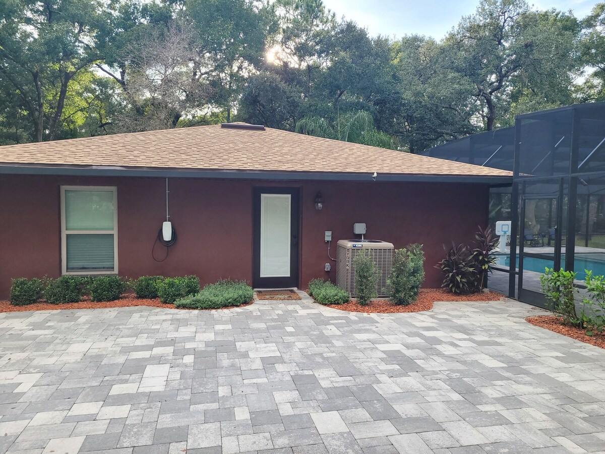 Menekülj a tömegtől, és lazíts ebben a teljesen privát, egy hálószobás vendégházban, amely mindössze 10 percre van a strandtól és 15 percre Daytonától. Ez a nemrég felújított, medencés otthon egy csendes, biztonságos környéken található, és teljes konyhával, gardróbszobával, kanapéággyal, valamint közös medencével, kültéri zuhanyzóval és mosdóval rendelkezik. Ideális azok számára, akik élvezni szeretnék mindazt, amit Daytona kínál, de inkább a békére és a csendre vágynak!