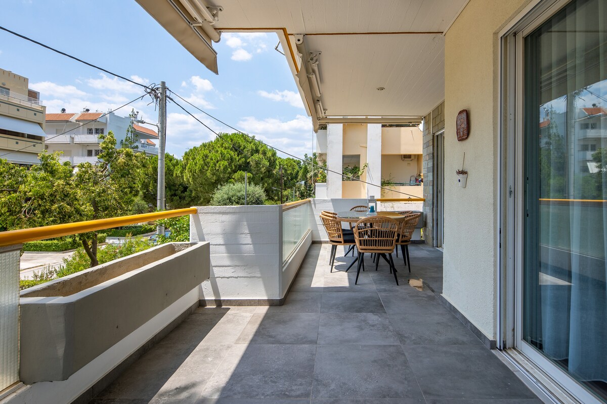 Ez a stílusos, egy hálószobás lakás az épület oldaláról független bejárattal rendelkezik. Nyitott nappalival és teljesen felszerelt konyhával rendelkezik. Kényelmes hálószoba queen méretű ággyal és nagy gardróbbal. A nappaliból egy nagy, nyugágyakkal felszerelt teraszra is kiléphetsz. Ebben a hangulatos lakásban modern fürdőszoba is található zuhanykabinnal. Elhelyezkedése közvetlenül Voula központjában található, 3 perc sétára az üzletektől , a strand 400 méterre található. Busz, taxiállomás és villamos közelében