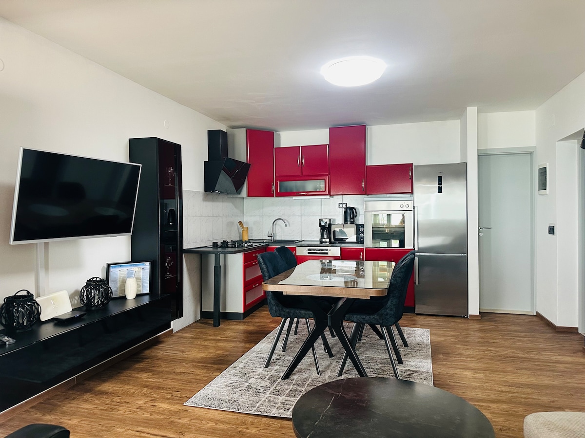 Modern, stílusos és teljesen felszerelt lakás saját fűtött medencével a környéken. Ha inkább a városközpont közelében szeretnél lakást bérelni, ugyanakkor távol a zajtól és a tömegtől, a helyünk tökéletes választás. Minden tőlünk telhetőt megteszünk annak érdekében, hogy a nyaralásod a lehető legjobb legyen.