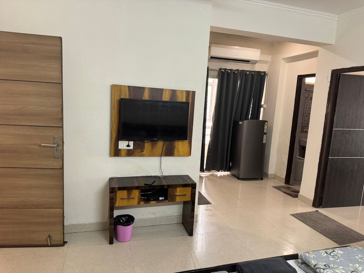 Meera Niwas: 2-BHK retreat, 10 min Prem Mandir, 12 min to ISKCON. Perfect for families/small groups. 2 beds | 2 baths | Living-dining | 2 balconies. Equipped kitchen, AC/fridge/Oven/geyser/Wi-Fi/ Water Filter. Sleeps 4, extra mattresses for 2. Guest Access: Entire apartment yours. Daily essentials/ cafes/ nearby. Travel Easy: We arrange reliable local taxis for airport/railway or temple tour at fair rates. Come home to Meera Niwas for a peaceful, spiritual Vrindavan stay. We await you.
