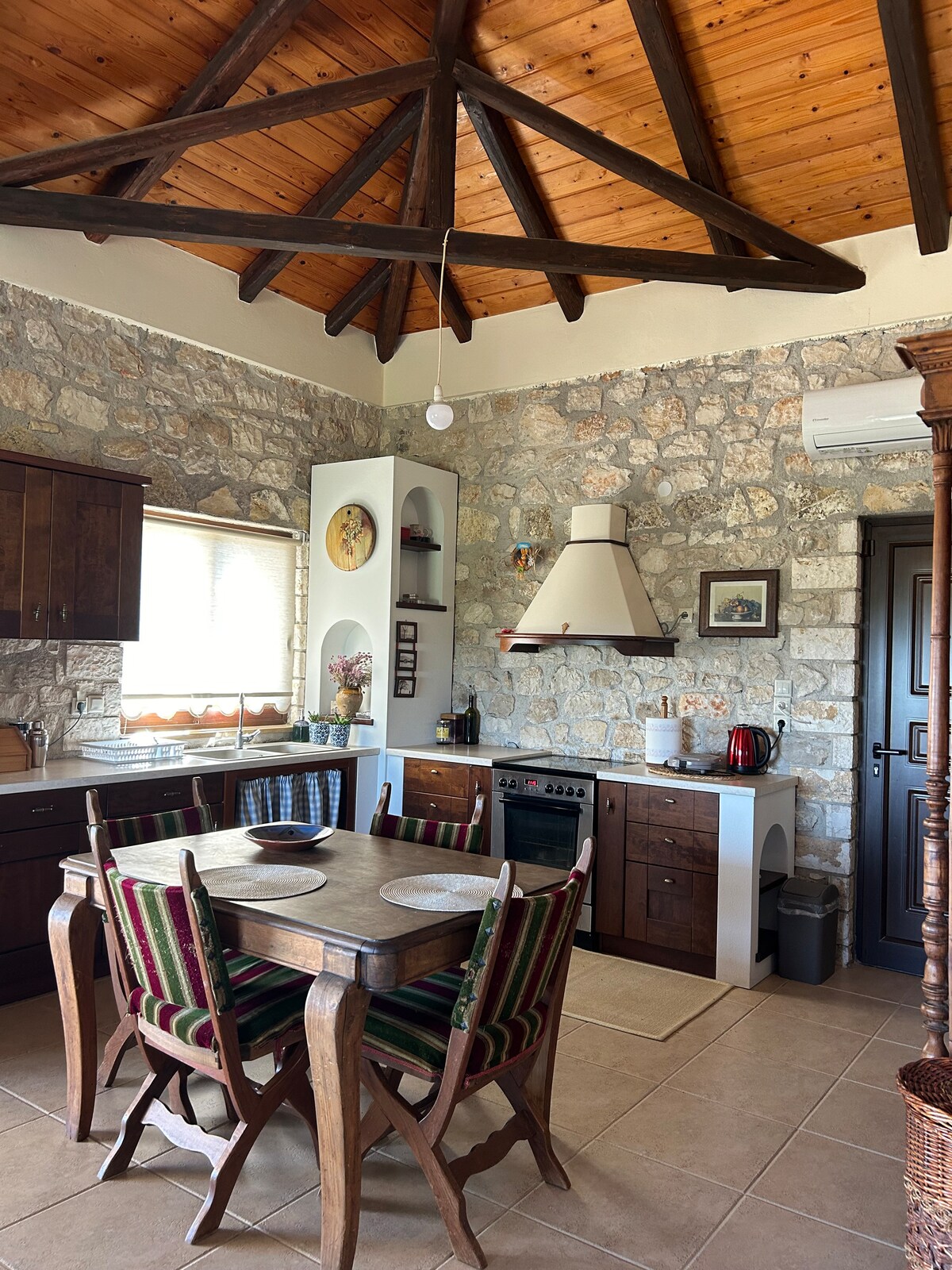 Ez a lenyűgöző, kőből épült villa privát medencét kínál a tökéletes kikapcsolódáshoz, és kényelmesen helyezkedik el a helyi strandok, éttermek és kényelmi szolgáltatások, például szupermarketek, bárok és kocsmák közelében. A Zaga strand és az Agia Triada 6 percre található! A vendégek ingyenes wifit és parkolót élvezhetnek. Kivételes választás egy emlékezetes és pihentető nyaraláshoz.