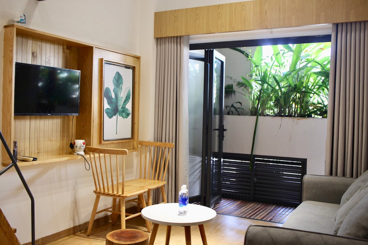A Mermaid Seaside Hotel Vung Tau luxus 2 hálószobás apartmanja tökéletesen alkalmas egy csoport vagy egy 4 fős kis család számára, 2 kényelmes franciaággyal. Ez az elegáns apartman széles, nyitott ablakokkal rendelkezik, amelyek lenyűgöző panorámás kilátást nyújtanak Vung Tau városára, a hegyekre és az óceánra, tökéletes keveréket alkotva a városi és a természetes tájakból egy pihentető és élvezetes tartózkodáshoz. A környezet ötvözi a kényelmet, a stílust és a figyelemre méltó kilátást, hogy a látogatásod emlékezetes legyen.