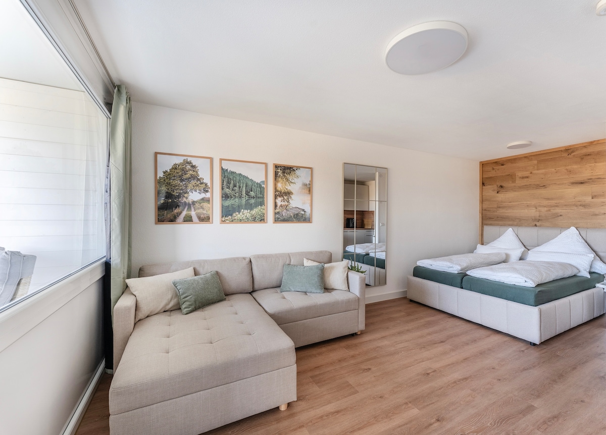 Üdvözlünk a Fewo Sperlingskauzban! 🦉 Közvetlenül Schluchsee-ben, 🏞 a nagyszerű gyógyszállodában található kétszobás lakásunk egy jól karbantartott komplexumban található, és akár 4 vendégnek is csodálatos tartózkodást kínál. A lakást újonnan felújították és berendezték, nagy figyelmet fordítva a részletekre. Az egész lakásban láthatod a természet „piros fonalát”,🌳🌲🦉 amely zöld és fából készült elemeket egyesít. Már nagyon várjuk, hogy üdvözölhessünk! Házigazdáid, Sam és Jenny