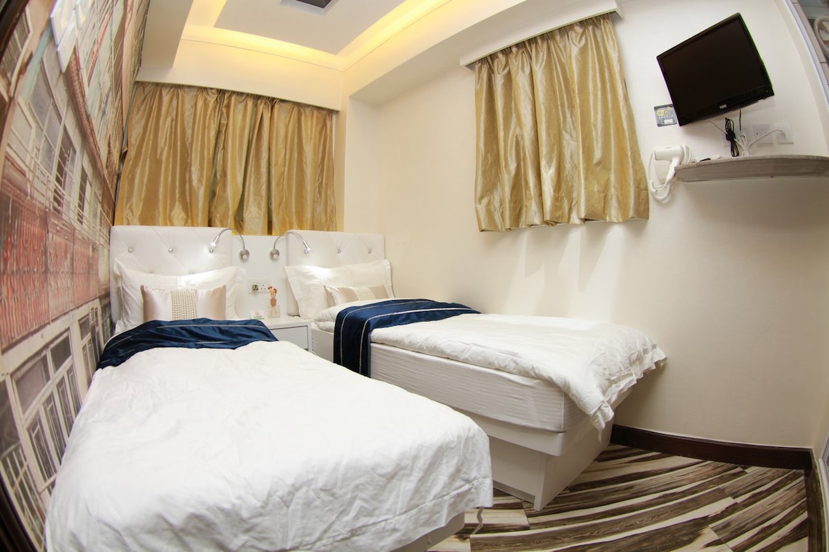尖沙咀區特大雙床房(81),尖沙咀站C2出口1分鐘到達,市區核心, Netflix&WIFI