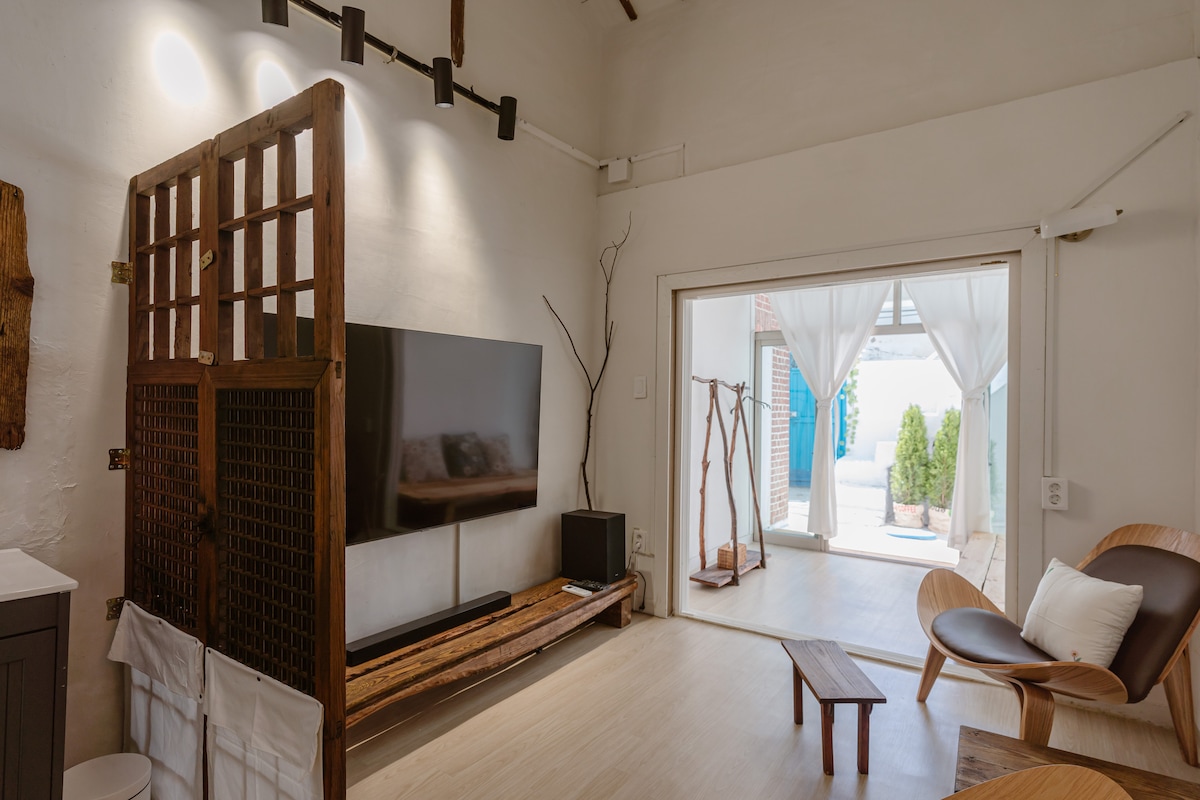 Pihenj. Egy hely, ahol pihenhetsz és nyugodtan maradhatsz A Hanok Stay Ando egy minimális hanok, amely a Jeonju Hanok Village központi banki útján található. Mivel ez egy privát szoba, használhatod anélkül, hogy mások zavarnának. Teljesen felújítottuk a hagyományos Hanokot az alapoktól, megtartva a Hanok egyedi antik báját, és kényelmes, érzékszervi belső teret hoztunk létre. -
