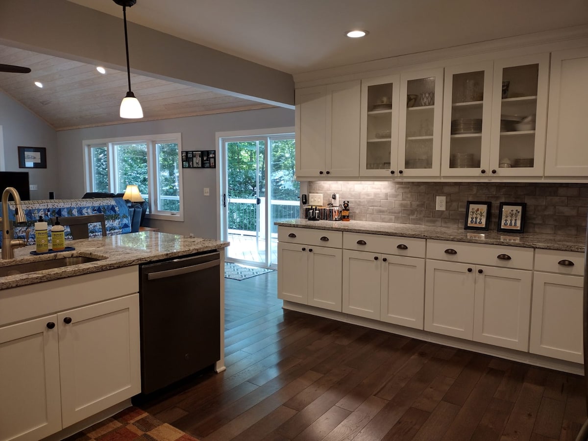 Welcome to your peaceful getaway at our waterfront, 2 bedroom / 2 bathroom home on Lake Gaston! This home is outfitted with modern bathrooms, a large kitchen, family room and dock. Relax in our large outdoor space, great for gathering with family and friends to enjoy meals, games or just relax. Located only 1 mile from the grocery store, Lake Gaston Outfitters and Lake Gaston Coffee Shop. Also very close to top-rated local restaurants and Jenny Cakes Bakery.