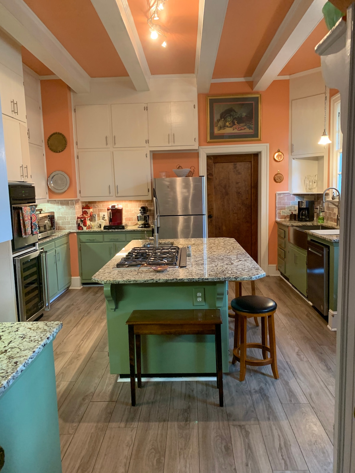 Üdvözlünk a Peete House-ban, egy 1911-es, 4700 négyzetméteres neoklasszikus otthonban Warrenton belvárosában. Két háztömbnyire az éttermektől, bároktól, a könyvtártól, a régiségboltoktól és még sok minden mástól. Az építészeti és kertészeti érdekek itt virágoznak. Fedezd fel a nagy koi tavat, a két hektáros kertet és a további két antebellum házat, amelyek az ingatlanon élnek. Ez az otthon egyedülálló, mivel 5 hálószobával rendelkező családot tud fogadni; 3 a King Suites. A kis bulik felár ellenében vehetők igénybe.