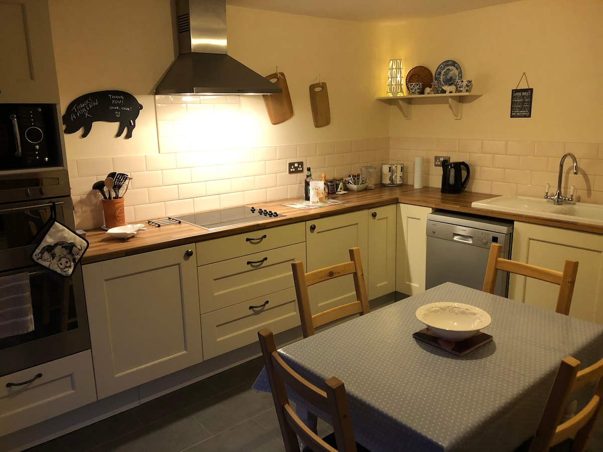 Gyönyörű pajtaátalakítás, akár 4 + csecsemő is elfér lenyűgöző félemeletes hálószobával, king méretű ággyal és boltíves mennyezettel. Open plan living optional use of double kanapé bed. Jól felszerelt konyha, beleértve a Nespresso kávéfőzőt. Beltéri úszómedence és kültéri Hydropool pezsgőfürdő használata. Saját kert rattan bútorokkal. Díjnyertes kézműves farmbolt kávézóval és pékséggel a helyszínen. A kulcsokat egy kulcsszéf segítségével gyűjtjük, így rugalmasságot biztosít az érkezési és távozási időpontok tekintetében.