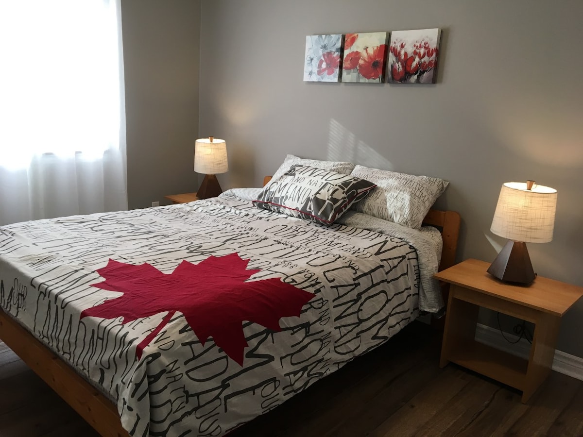 Welcome to our charming main floor apartment in the beautiful city of Orillia! This space is is suitable for families or small groups looking for a comfortable stay in a convenient location. This is a fully furnished home that features three bedrooms, one bathroom, a fully equipped kitchen with all the essentials needed to prepare your own meals. The living room is bright and cozy with a 43" Samsung Smart TV including Netflix, unlimited high speed internet and a spacious 6 seater dining table.