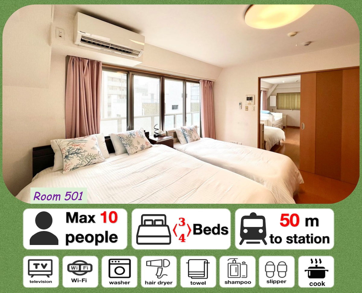 6 perc (sta–Sindzsuku) /2 emeletes otthon/9 fő /69 m2 /3DK