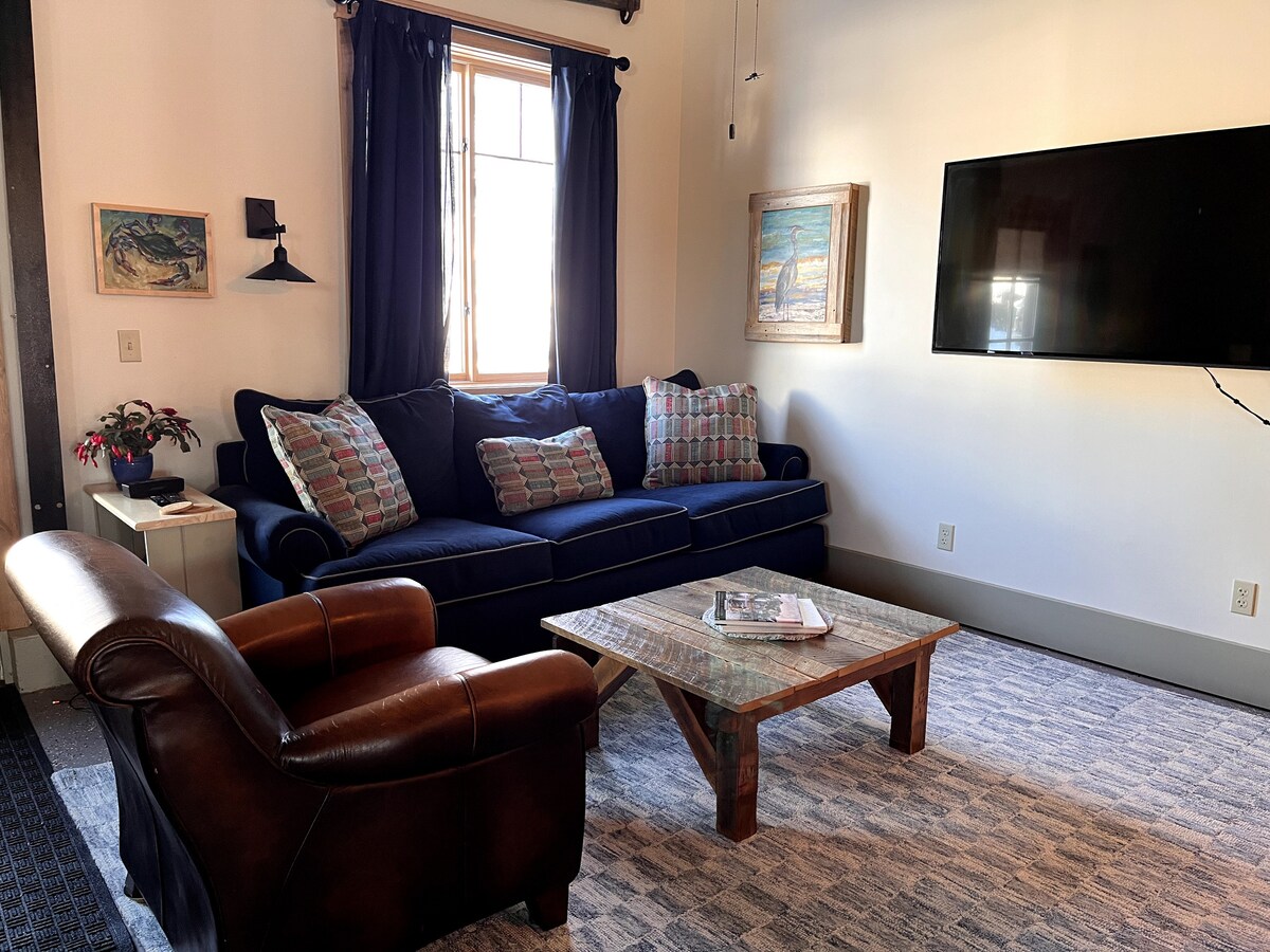 • Perfect for small families or couples, our signature A-Frame cabin features a modern interior gas burning fireplace, soaring ceilings, huge windows, stylish interiors, and all the comforts of home. • This cozy 1,100 square foot space comfortably accommodates up to four guests in two bedrooms (one with a King-size bed and the other with a Queen-size bed) and a shared bathroom. • 7 minute drive to downtown Freeport. • Proud to be ranked in the top 1% and voted Guest Favorite!