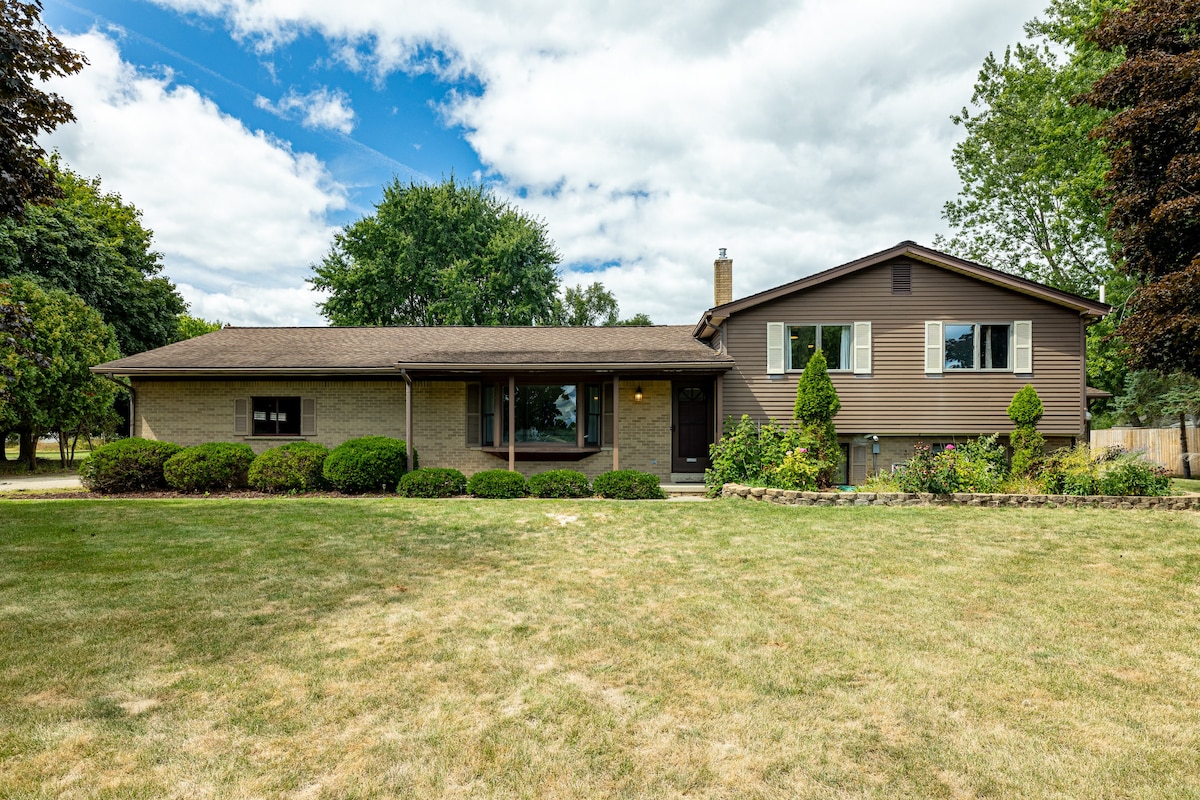 Gyönyörű kétszintes otthon Ypsilanti Twp-ben, mindössze 14 mérföldre Ann Arbor-tól! 3 egyedien díszített hálószoba és 2 1/2 fürdőszoba biztosítja a kényelmes tartózkodást a csoport számára. A tágas otthonban egy teljes konyha is található, amelynek tetőablakán természetes napfény, étkező és nappali található. Élvezd az alsó szinten található kandallót, az asztalt és a játszóteret, majd sétálj ki a teraszra és a privát hátsó udvarra az alsó szintről.