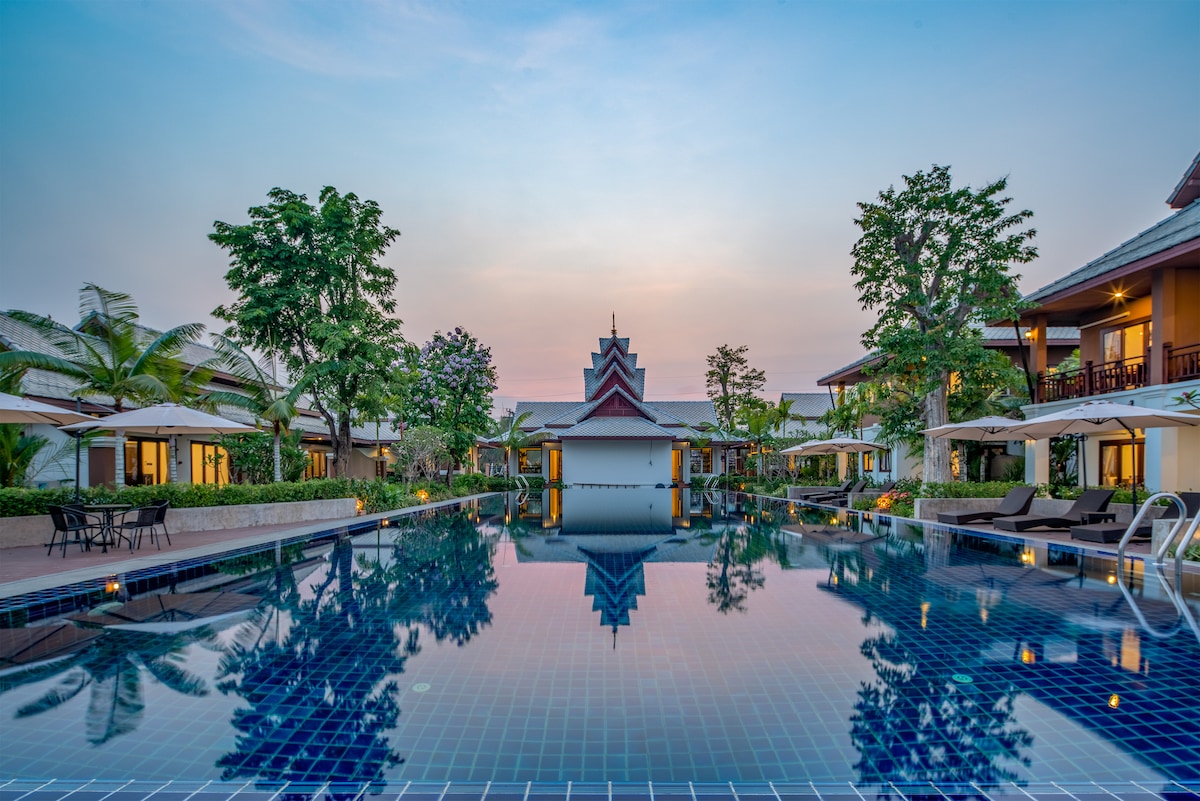 Ez az extra tágas vezetői lakosztály további romantikus hangulatot áraszt, a nagy teraszon pedig saját kültéri melegvizes fürdőkád található. Itt napi kilátást nyújthatsz Doi Suthepre, Chiangmai legmagasabb hegyére. A kilátás a naplementében különösen emlékezetes, különösen akkor, ha egy ital mellett élvezhető, miközben egyedül vagy egy szeretett emberrel fürödsz. A belső tér különleges dekorációval, teakonyhával, kényelmes nappalival és erkélyekkel rendelkezik, hogy jobban kapcsolódjon az elemekhez.