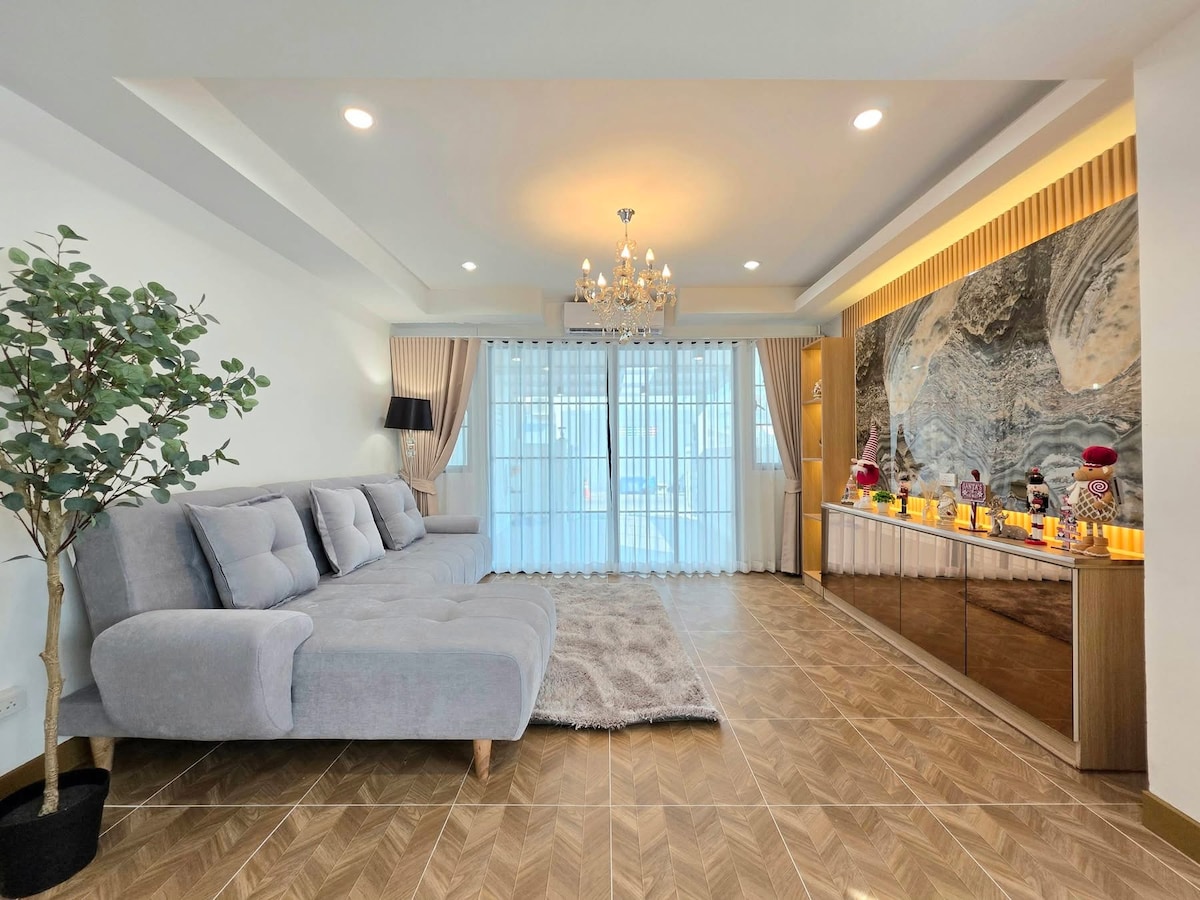 Privát prémium sorház – Teljes privát szféra közös helyiségek nélkül! Modern, kétszintes otthon 3 hálószobával, 2 fürdőszobával, tágas nappalival, konyhával és elülső udvarral • Nagy sebességű Wi-Fi – tökéletes távmunkához • A 24 órás biztonság biztosítja a nyugalmat • Privát parkolás a helyszínen • Okostévé Netflix, VIU és AIS Playbox szolgáltatással • Tökéletes családok vagy a csendet és a magánéletet értékelők számára Elsőrangú elhelyezkedés a következők közelében: • 7-Eleven és 88 Market • Central Chaengwattana • MRT Purple és Pink Lines • Major Hollywood Pak Kret