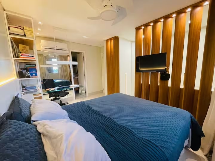Kényelem, biztonság és szórakozás az egész családnak! Apto todo Légkondicionált, teljesen felszerelt konyha, mosógép, 2 Smart TV 55" és teljes ágynemű és fürdőlepedő. Bairro Nobre de Cuiabában található, a Shopping Pantanal, a Centro Política Administrativo, a Hospital São Mateus, szupermarketek és éttermek közelében. Comdomínio Padrão Clube, úszómedencével, játékokkal, játékteremmel, akadémiával, focipályával, grillezéssel, ínyenc helyiséggel és egy gyönyörű kerttel a szemlélődéshez!