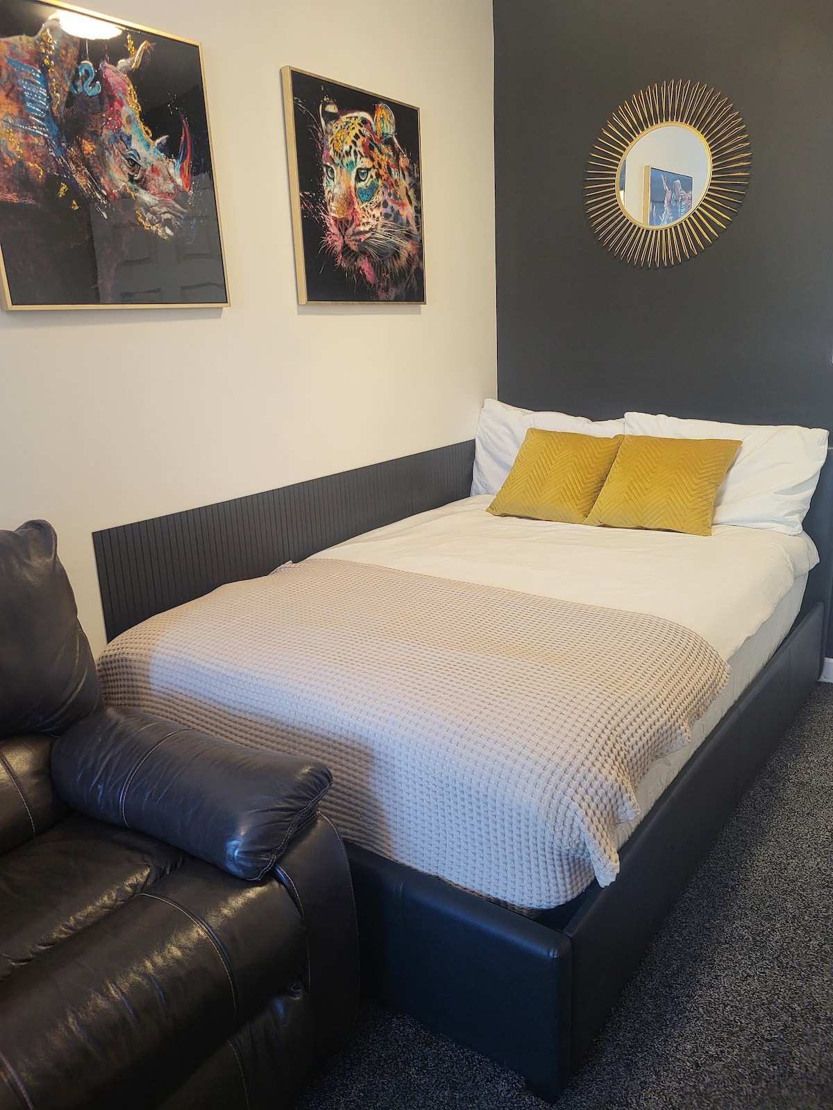 This property has been converted from stables into a large 2 bedroom apartment with hot tub suitable for maximum 6 people. near the main house (also available to rent for larger groups up to 12 people) and an adjacent studio apartment. It has 2 large bedrooms with super king beds and memory foam mattresses.Each bedroom has blackout blinds and electric Velux blinds. The bathroom has rainfall shower head and 5ft long shower tray with luxurious Bluetooth vanity Mirror