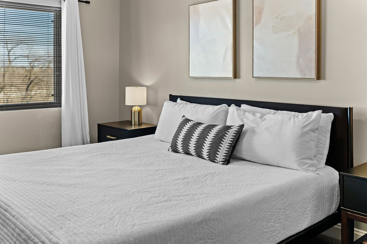 Modern retreat near Jordan Creek! Enjoy a spacious layout with a full kitchen, king bedroom with walk-in closet, private patio with grill, and your own garage. Walk to top dining, shopping, and entertainment. Resort-style amenities include a heated pool, fitness center, and free tanning. Fast Wi-Fi, smart TV, and in-unit laundry included. Perfect for short stays or extended trips — corporate housing available!