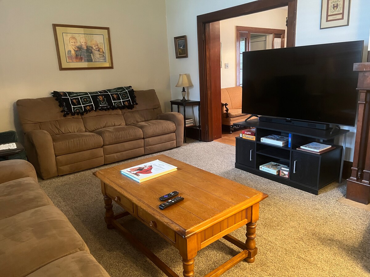 Szállj meg stílusos, részben átalakított helyünkön, amely a modern kényelmet az eredeti karakterrel ötvözi! ️Takaríts meg 10% -ot a nem visszatéríthető foglalási lehetőségen keresztül! ✨Kutyabarát díj háziállatonként/éjszakánként; legfeljebb 2 kutya ✨Élvezd az új készülékeket, világítást, légkondicionálást; eredeti padlót és nagy verandát ✨Sétálj az éttermekhez és élelmiszerboltokhoz; autóval csak 4 perc a bevásárlás, a folyópart és a parkok ✨Csak 7 percre Marshalltól és kevesebb mint 10 percre a kórházaktól. 1 mérföldre az Arenától és 2 mérföldre a Marshall stadiontól