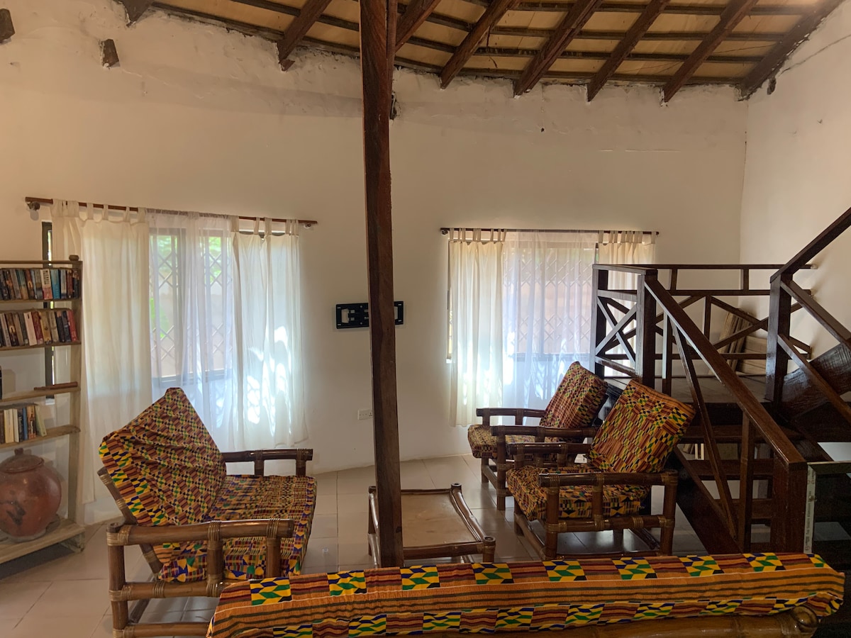 Tágas, 4 hálószobás otthon Weijában, Accrában. Minden szobában van légkondicionáló és saját fürdőszoba. Élvezd a bőséges parkolást és a teljesen felszerelt konyhát mosógéppel. Egy gondnok a fiúk szállásán gondoskodik a kényelmedről. Tartalék generátor is rendelkezésre áll. Mindössze 5 percre a West Hills bevásárlóközponttól, a helyi bároktól és üzletektől. Kokrobite és Accra központja főbb strandjai a közelben, a nyugodt Gomoa Fetteh strandok pedig 30 percre találhatók. 25 percre a Kotoka nemzetközi repülőtértől. Ideális a kényelemhez!