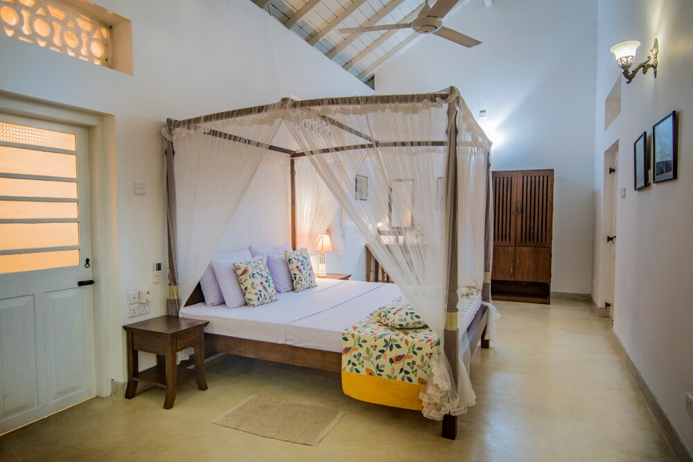 This property is our ancestral home constructed before the World War 2 . Situated in a large coconut plantation 4 bedroom home, surrounded by green natural landscape . Eco friendly atmosphere and the house is powered by Solar PV and Solar hot water is provided all showers in toilets. A shared infinity fresh water pool only for the use of the 2 properties within same the compound. Driver’s bed space can be arranged at a nearby location on prior request and charged separately.