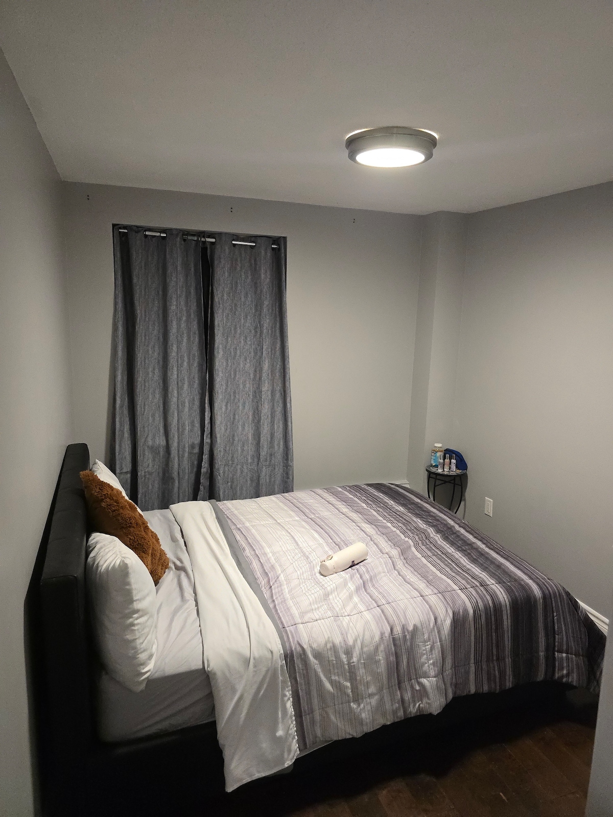 Privát bejárat egy nagy (10x20) hálószobába/nappaliba. A szobában fűtés/légkondicionáló, apartman méretű hűtőszekrény/fagyasztó, kétszemélyes ágy, bőr kanapé, szekrény, polcok, íróasztal és szék található. A házban, közvetlenül a szobáddal szemben található egy két helyiséges fürdőszoba. Közös zuhanyzó/fürdő a második emeleten. Tökéletes diákoknak vagy dolgozóknak. Utcai parkolás áprilistól novemberig. 2 perc sétára a tömegközlekedéstől, 40 perc sétára az egyetemtől, 10 perc sétára az élelmiszerbolttól, éttermektől, banktól.
