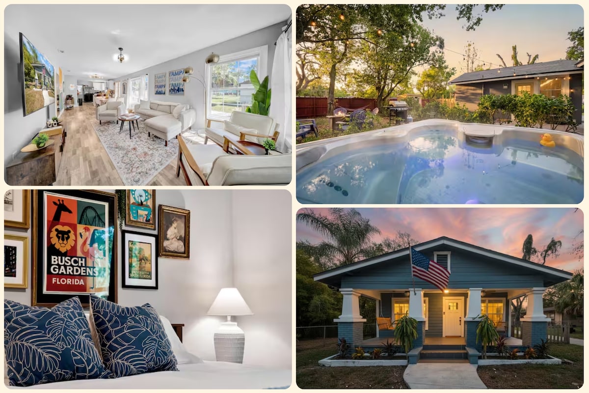 Meghívunk a casita Tropicalba. A trópusi érintésekkel rendelkező terasztól a romantikus pezsgőfürdőig olyan leszel, mintha egy trópusi nyaraláson lennél, miközben a Tampa-öböl szívében vagy 🌴 5 percre a Raymond James Stadiontól - sétálj a stadionig, ahelyett, hogy fizetnél a parkolásért ✈️ 8 percre a repülőtértől 🌴 Armature munkák 10 perc 🌴 Nemzetközi bevásárlóközpont 10 perc 🌴 Ybor város (Tampa belvárosa) 15 perc 🌴 Sparkman Whalf 17 perc 🌴 Minden Lopez park 4 perc 🏝️ Clearwater strand 30 perc 🏝️ St Pete strand 35 perc