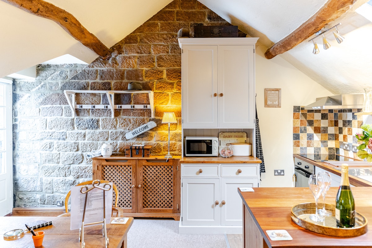 Ez a kényelmes stúdió csodálatos kilátással, rengeteg szabadtéri területtel, a küszöbtől sétálva és a közeli jó ételekkel rendelkező kocsmák tökéletes azoknak a pároknak, akik vidéki helyen szeretnék feltölteni az akkumulátoraikat. Jól felszerelt konyhával rendelkezik, beleértve a mosogatógépet, a White Company ágyneműt, a padlófűtést független kezelőszervekkel, valamint saját kombi-bolierrel rendelkezik a meleg víz, a televízió és a Wi-Fi számára. A Peak District szélén található, számos helyi látnivalóval, mint például a Chatsworth és a Hardwick Hall.