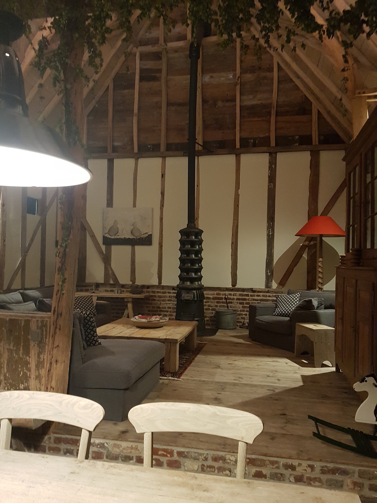 Stílusos, felújított pajta Poeke kastélyterületének közelében. Kényelem és luxus laza légkörben a vidék közepén. Egy hely, ahol lazíthatsz, találkozhatsz, inspirálhatsz, és rendkívül alkalmas lehetsz a csend élvezetére. Szép időben a szabadtéri teraszon szállhatsz meg. A síkképernyős, a Wi-Fi, a kávé és a teasarok alapfelszereltség részét képezik. A kanapékkal ellátott, robusztus, fából készült kolostorasztalnál otthonos vacsorákat és magával ragadó beszélgetéseket tarthatsz.
