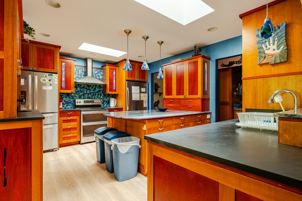 Stonehaven egy egyedi, művészies otthon az erdős West Hillsben, 6 mérföldre Portland belvárosától. Tökéletes az együtt utazó családnak és barátoknak. Legfeljebb 15 fő fér el 6 hálószobával, 10 ággyal és 3 fürdőszobával. A házigazda a szálláshelyen lakik. Nem egy buliház. Vedd figyelembe, hogy a februári szél- és jégviharok tönkretették a hátsó udvar tavát. A hátsó veranda még mindig használható, de a természet pusztításának „szépségével” rendelkezik, nem pedig egy elegáns, parkosított tó létrehozásával kapcsolatos kemény munkának a szépségével.