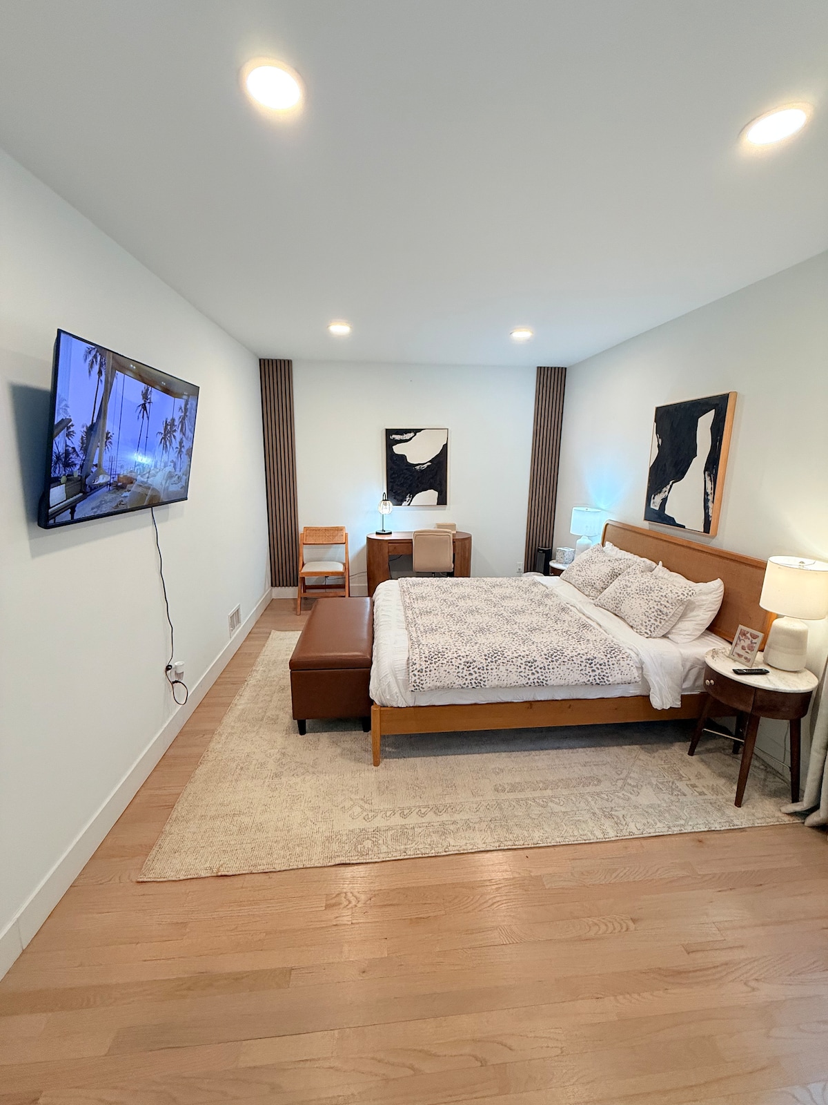 A hangulata miatt azonnal otthon fogod érezni magad, amint belépsz. Ez az aranyos, földszinti, 280 négyzetméteres Tiny Guest Suite teljesen berendezett és szépen dekorált – minden benne van, amit csak el tudsz képzelni. 1 hálószobából, 1 fürdőszobából és egy konyhából/étkezőből/nappaliból áll Szobák mérete: Hálószoba: 10 láb x 7 1/2 láb LR konyha DR területe: 19 láb x 10 láb Fürdőszoba: 102 x 203 cm Tekintettel arra, hogy milyen közel van mindenhez – tökéletes azoknak a vendégeknek, akik vonattal szeretnének ingázni a városba, vagy Uberrel közlekedni.