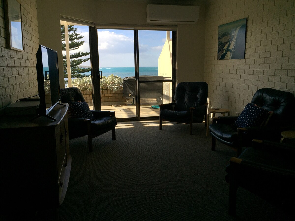 A private self contained two bedroom ground floor apartment with R/C air conditioning.Both bedrooms have double beds with linen included.Own lounge with TV,netflix and wifii, music .Kitchenette, fridge, microwave ,toaster and kettle. Large bathroom with walk in shower. Continental breakfast supplied. Enjoy amazing views over Encounter Bay. Quiet location and off street parking. The beach is a 10minute walk or 5minute drive.