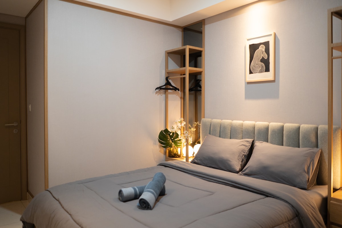 Retreat into a tranquil oasis where clean lines, natural materials, and a harmonious color palette create a sense of serenity. This thoughtfully designed Airbnb is a haven of simplicity and functionality, offering a peaceful escape from the urban bustle. With direct access to Central Park Mall, you’re just a few steps away from a world of shopping, dining, and entertainment. Whether you’re in the mood for a shopping spree or take a walk in Jakarta Aquarium, everything is at your doorstep.