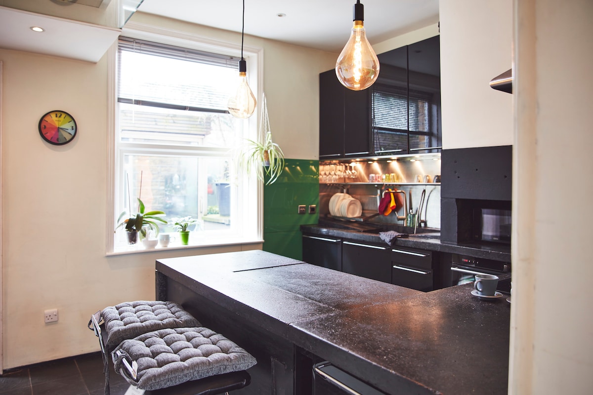 3 emeletes viktoriánus Stone Terrace ház korabeli és kortárs jellemzőkkel A modern otthon minden kényelme, beleértve a jól felszerelt konyhát is, otthon érezheti magát és egy projektor szobát! Csendes utca, kilátással a bowling zöldre, kilátással a Castle Hillre és az Emley Moorra. Bőséges ingyenes parkolási lehetőség közvetlenül a szabadban. Sétatávolságra a városközponttól, az egyetemtől és a vasútállomástól. Ez is egy kényelmes kiindulópont a Pennine vidék felfedezéséhez. A gyönyörű Greenhead Park 10 perces sétával elérhető