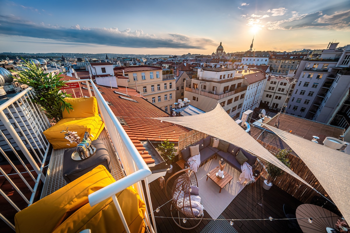 Welcome to our EXQUISITE rooftop apartment in the very heart of Prague! This stylish and spacious retreat offers 4 beautiful bedrooms, comfortably accommodating up to 12 guests, making it the perfect choice for a group or large family vacation. Experience the MAGIC of Prague with a 360° view from our huge terrace, where you can soak in the breathtaking panorama of the city. Stay cool and comfortable with our top-notch AC system. Our ELEGANT and MODERN space promises an UNFORGETTABLE stay.