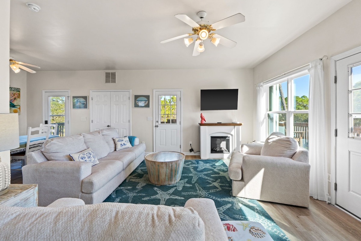 Hozd el az egész családot a vízparti szálláshelyedre. Élvezd a saját hozzáférésedet a St. Andrews Bay Beachhez, beleértve a saját mólódat is. Tapasztald meg a vízi étkezést, a horgászást, a napozást, a kajakozást vagy a SUP-t. Figyeld a madarakat, teknősöket és delfineket. Hozd magaddal a saját hajódat és horgonyozz le a parton, vagy bérelj hajót a kikötőből az utca túloldalán. Ez egy nagyszerű családi úti cél. Bízd ránk a nyaralásodat, pihenj, és élvezd az öbölre nyíló kilátást, a saját öbölpartot és a teret. Esküvő és buli egyáltalán nem engedélyezett.
