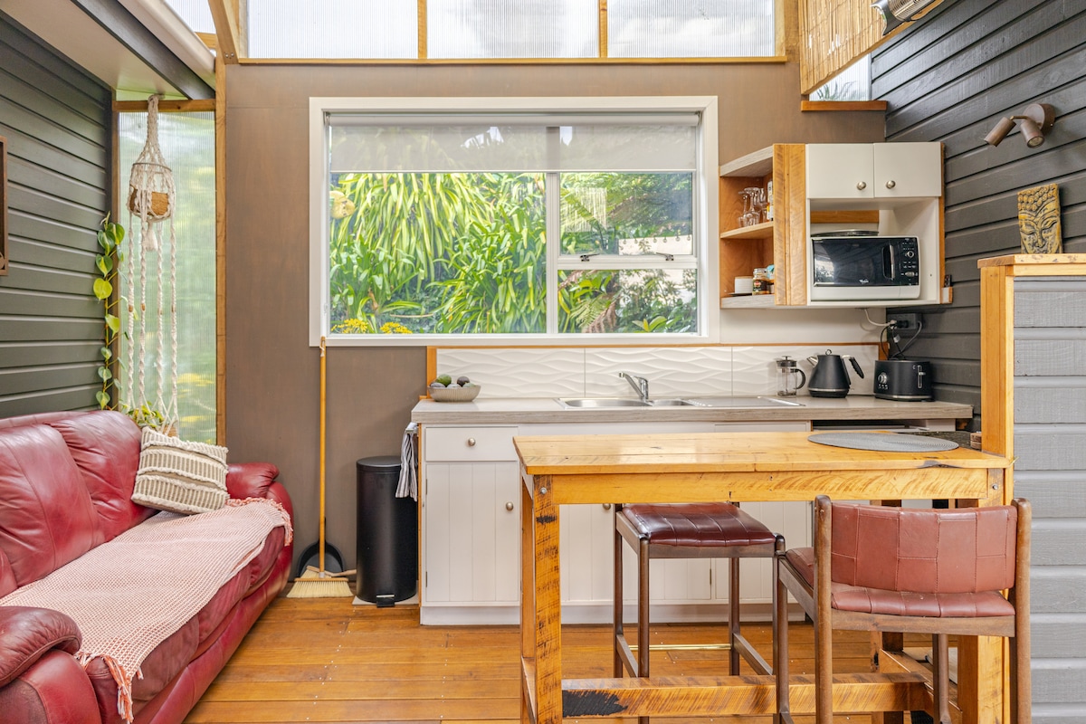 Kétfős, hangszigetelt, hangulatos víkendház, amelyben egy king méretű ágy vagy két egyszemélyes ágy is elhelyezhető. A fürdőszoba nem saját, hanem közvetlenül a szoba előtt található, és ideális. Egy hely, ahol lazíthatsz, és kiszabadulhatsz a városi élet stresszéből. Elszigetelt, csendes, privát, bokrok és hegyek veszik körül, saját parkolóval és étteremmel, pubbal és folyóval a közelben. Közel a Karangahake-szurdokhoz és a közeli Waihi, Paeroa és Waihi Beach településekhez. Grillsütő, hűtőszekrény, mikrohullámú sütő, evőeszközök, edények, ágynemű, törölközők és Wi-Fi áll rendelkezésre.
