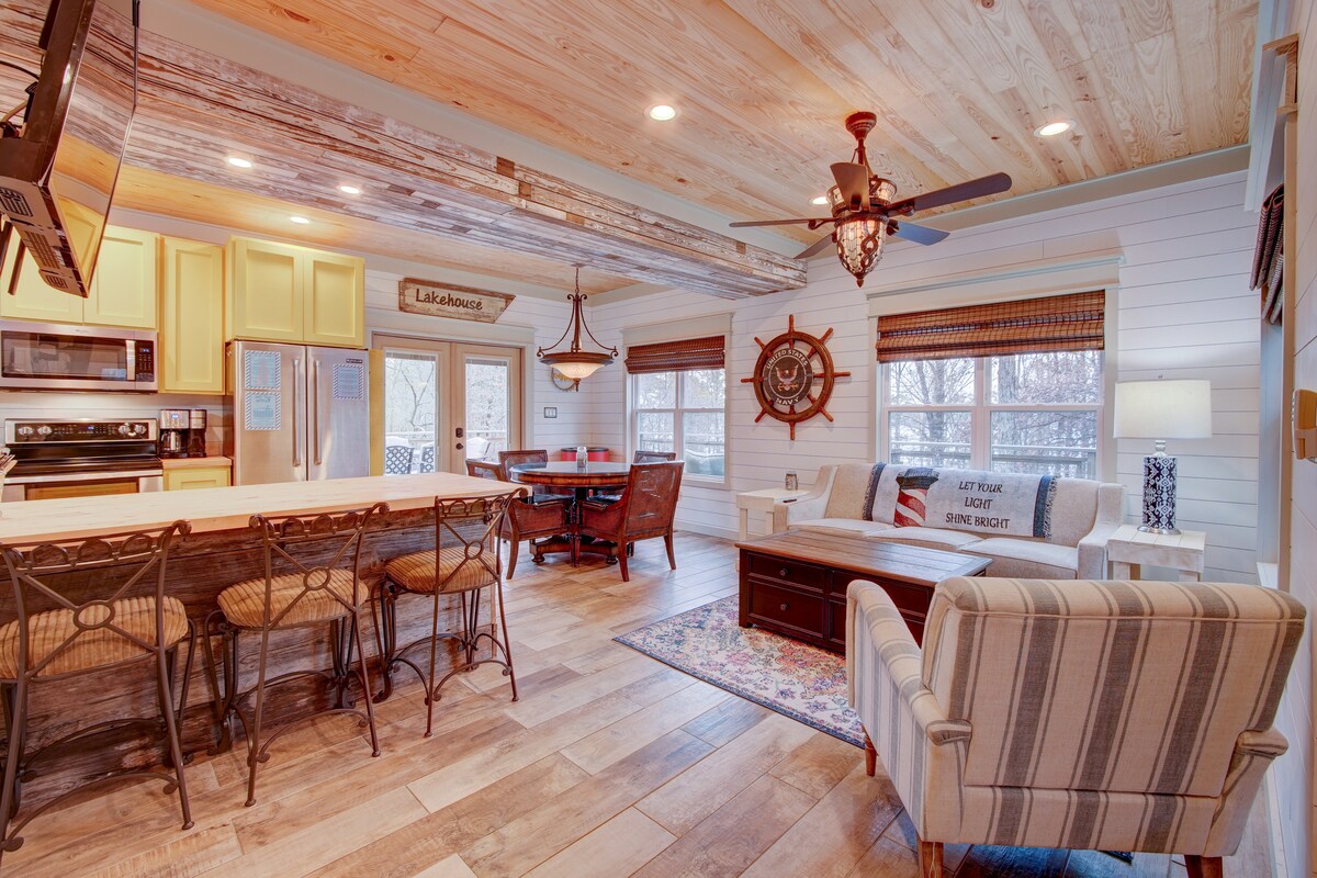 Bájos, modern tóparti hegyi házunk egy szikla tetején helyezkedik el, egy gyönyörű esküvői helyszín közelében. A nyilvános csónakindítóhely mindössze 1 percre van, a Snakehead Cove ugrálósziklái pedig rövid/kerékpáros/quados útra találhatók. Élvezd a vendégbérleteket olyan létesítményekhez, mint a pickleball/teniszpályák, 3 medence, bowlingpálya, Hart Health Center beltéri medencével, minigolf, Mountain Ranch és Indian Hills golfpálya. 90 mérföldnyi ATV/UTV ösvény. Jannsen's Lakefront 15 percre, és… A TÓ! ⚠️ Sok kényelmi szolgáltatás szezonális ⚠️