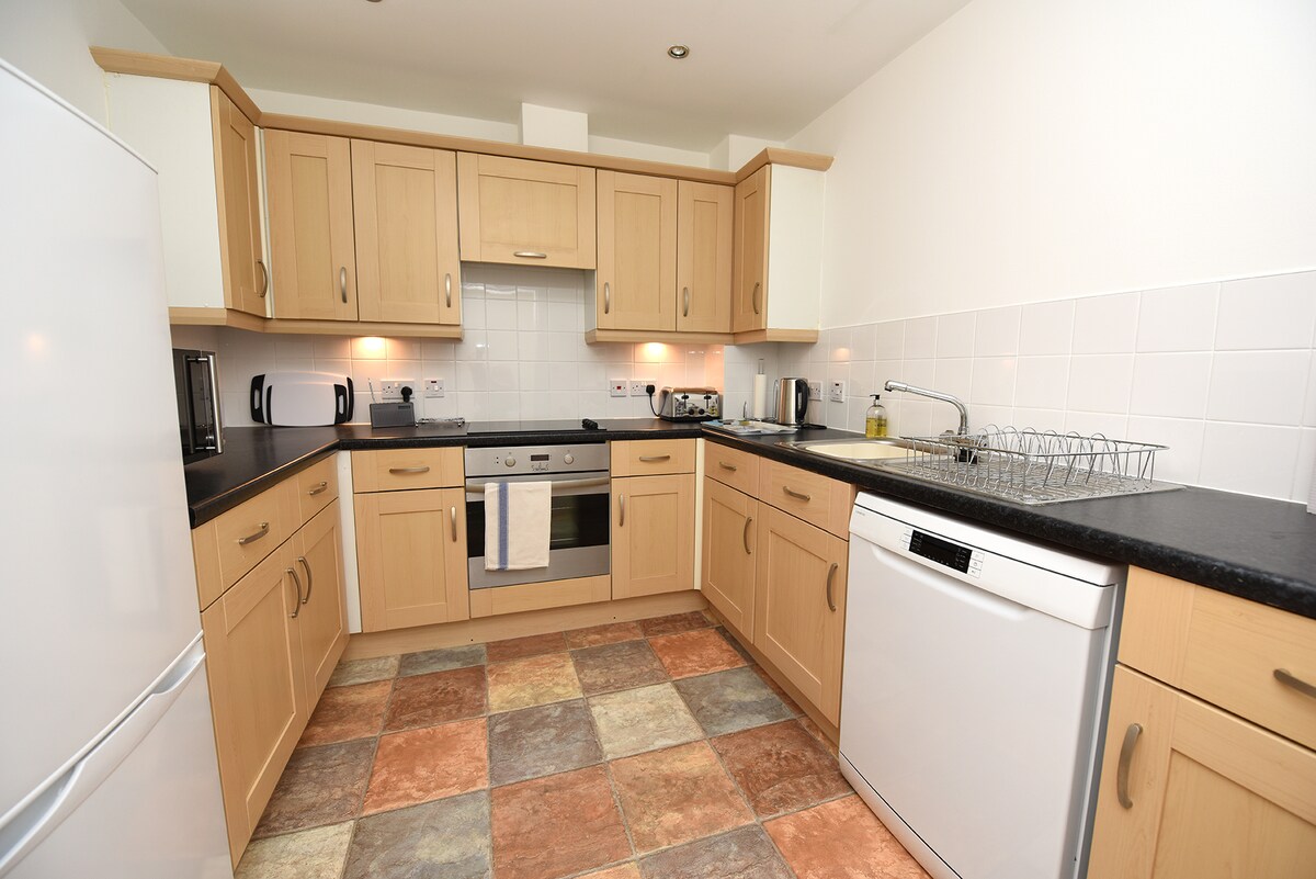 Ez a modern, tengerészeti témájú földszinti lakás (6 lépcsőfokkal elöl és hátul) egy rövid sétára van a strandtól, a kocsmáktól és a nyüzsgő városközponttól, de ideális helyen található a West Cliffen, hogy élvezhesse a város csendesebb részét. Tágas társalgó/konyha/étkező kanapéval és mesés kilátással az apátságra, egy külön kétágyas hálószoba és nagy külön zuhanyzó. Parkolóhely a helyszínen vagy parkoló 1 percre. Az elülső terasz közös használata a kilátás élvezetéhez. Jól nevelt kutyákat szívesen látunk.