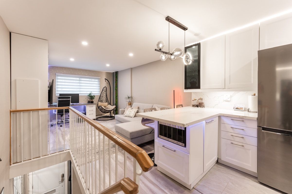★ „Nagyon szép lakás! Tiszta, tágas és modern” ★ ☞ Teljesen privát egység!!! ☞ Teljesen felszerelt konyha!!! Minden szükséges géppel és fazékkal ☞ Bővített konyha szigete ☞ Minden szoba queen + lepedővel és paplannal !!!!! ☞ 55hüvelykes intelligens Samsung TV Netflix-szel + Samsung hangsávval Sub ☞ Központi légkondicionáló + fűtés ☞ Helyszíni mosógép + szárítógép ☞ Parkolás → 1 a kocsifelhajtón!!! 700 ☞ MB/s Wi-Fi Koncepció ☞ megnyitása 5 perc → Thermëa spa falu 12 perc → Whitby és Ajax GO állomás