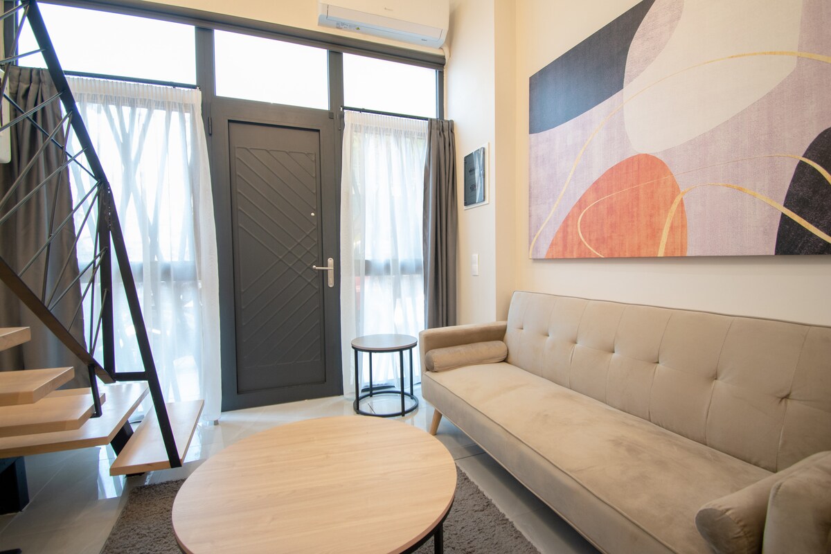 Stílusos stúdiólakás két fő részére Thesszaloniki szívében. Sétatávolságra a látnivalóktól, múzeumoktól, kiskereskedelmi üzletektől, parkolási lehetőségektől és a vízparttól. Optikai szálas 300 Mbps WiFi-kapcsolattal, légkondicionálóval, okos tévével, étkezőasztallal, hűtőszekrénnyel és teakonyhával az ételek elkészítéséhez, valamint egy bájos kis erkélyrel. Alkalmas rövid vagy hosszú távú foglalásokra.