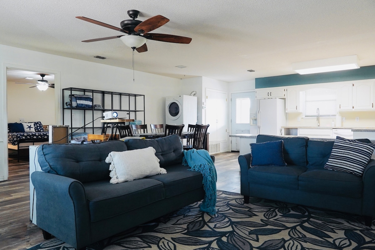 Pihenj és lazíts az egyik úttörő víkendházunkban! Akár 4 fő is kényelmesen elfér a saját hálószobában, amelyben egy king méretű ágy és egy nappalival rendelkezik, ahol egy queen méretű kanapé vagy egy kétszemélyes heverő található. A kényelmi szolgáltatások közé tartozik egy teljes fürdőszoba mosdóval, WC-vel és zuhanyzóval, légkondicionáló/fűtés, TV/DVD-lejátszó, valamint egy konyhasarok mosogatóval, 2 égős tűzhellyel, mikrohullámú sütővel, kávéfőzővel (csepegtetős), kis hűtőszekrénnyel, kenyérpirítóval, evőeszközökkel, fazekakkal és serpenyőkkel, valamint edényekkel. Felhívjuk a figyelmedet, hogy az ágynemű nem tartozék.