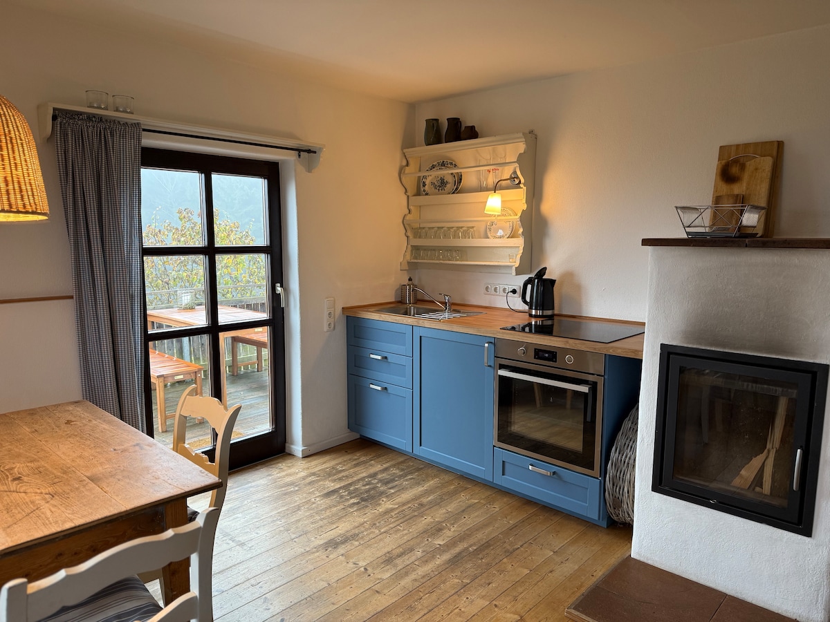 Stílusos, felújított régi pajta egy lenyűgöző, félreeső helyen, amely 120 négyzetméternyi helyet kínál panorámás kilátással a vidékre, egy 50 négyzetméteres galériát nagy ablakokkal, egy infravörös víkendházat, egy zuhanykabinot, egy fürdőkádat, egy luxus dizájner konyhát, egy terrazzo márványpadlót elektromos padlófűtéssel, egy történelmi csempézett tűzhelyet 1700-ból és egy elkerített kertet annyi kutyának, amennyit csak szeretnél. Egy álom mindössze 15 percre Passautól, 3 percre az autópályától és 10 percre a Dunától. Foglalható 2025 novemberétől