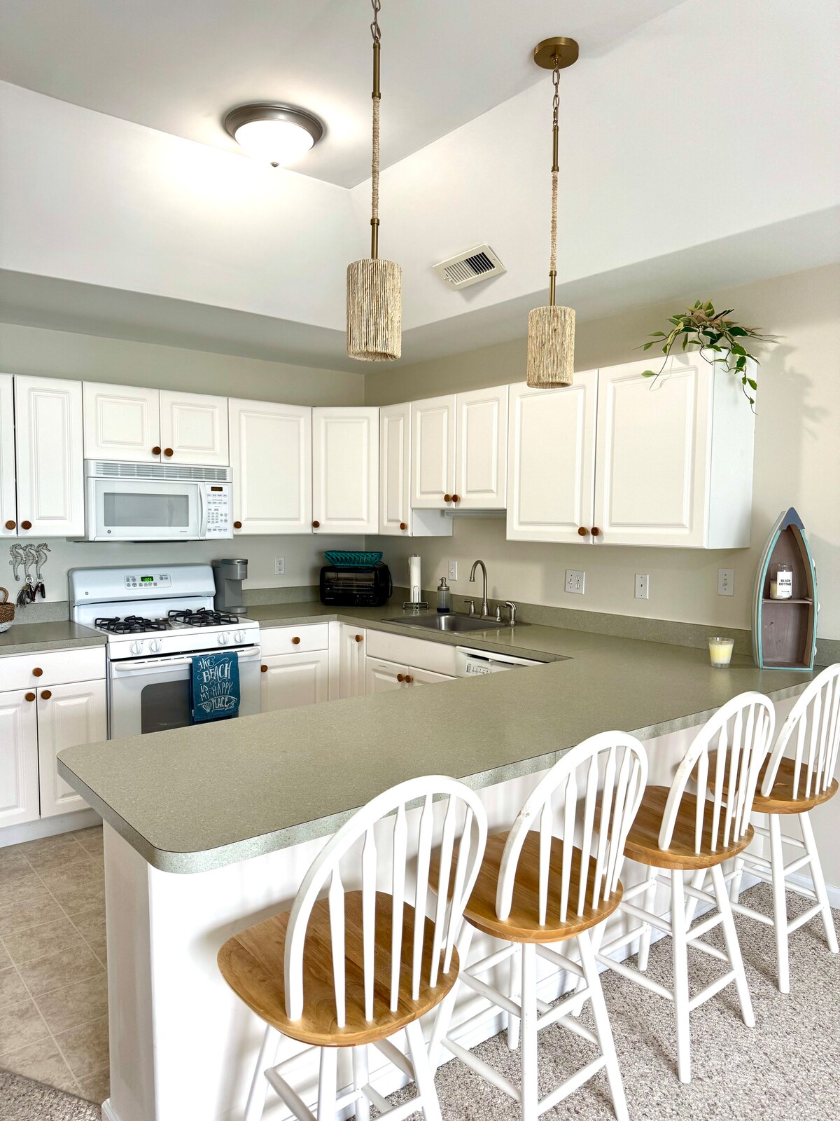 Csak 28 éves vagy annál idősebb családoknak és vendégeknek adunk ki szálláshelyet. Újonnan felújított, nyitott alaprajz. Teljesen felszerelt konyha kvarc munkalapokkal, 3 magas bárszék és étkezőasztal 5 székkel. Nappali síkképernyős TV-vel és műkandallóval. Master hálószoba franciaággyal és saját fürdőszobával a zuhanyzóban. Még két tágas hálószoba és teljes fürdőszoba. 6 felnőtt + kisgyermekágy fér el benne. Élvezd a privát fedélzetet és a parkolás kényelmét az 1 autóból álló garázsban. Strandszékek, strandkocsi, hűtő és esernyő biztosított.
