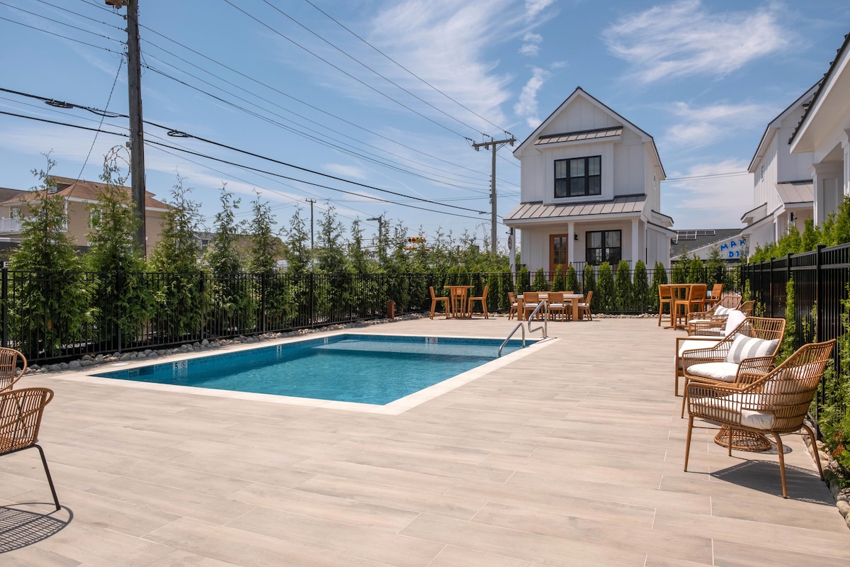 Csak 2 háztömbnyi séta a Wildwood ingyenes strandjaihoz és sétányához! Ez a világos, felújított, három hálószobás, egy fürdőszobás szálláshely kényelmesen elszállásolja a csoportodat. Élvezd a két privát teraszt, a modern konyhát gránit munkalapokkal és az ingyenes Wi-Fi-t. Ez az 111 négyzetméteres szálláshely tökéletes családoknak és csoportoknak, saját parkolóhelyet és kulcs nélküli belépést kínál a zökkenőmentes tengerparti nyaraláshoz. Mindenhová sétálni lehet! *A Hen Houses (Mudhen Hospitality) szemközti oldalán **Nem adunk ki szálláshelyet 25 év alatti vendégeknek