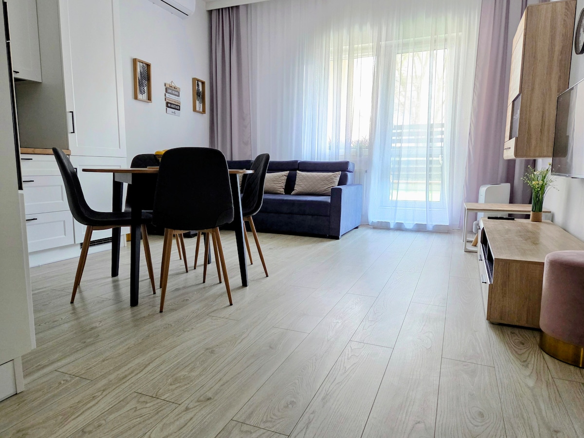 Gyönyörű, háromszobás lakást kínálunk egy csendes és békés lakótelepen Zielona Góra területén. Kínálunk nappalit, hálószobát és vendégszobát. Az apartman teljesen felszerelt konyhával, zuhanyzós fürdőszobával és vécével rendelkezik. Két munkaterülettel (székekkel ellátott íróasztalok) és internet-hozzáféréssel (1 Gbps) van felszerelve. A nappaliban egy kihúzható asztal található, amely akár 6 fő befogadására is alkalmas, egy nagy tévé kábeltévével és egy könyvespolc. Az apartman 5 személy kényelmes elhelyezésére alkalmas.