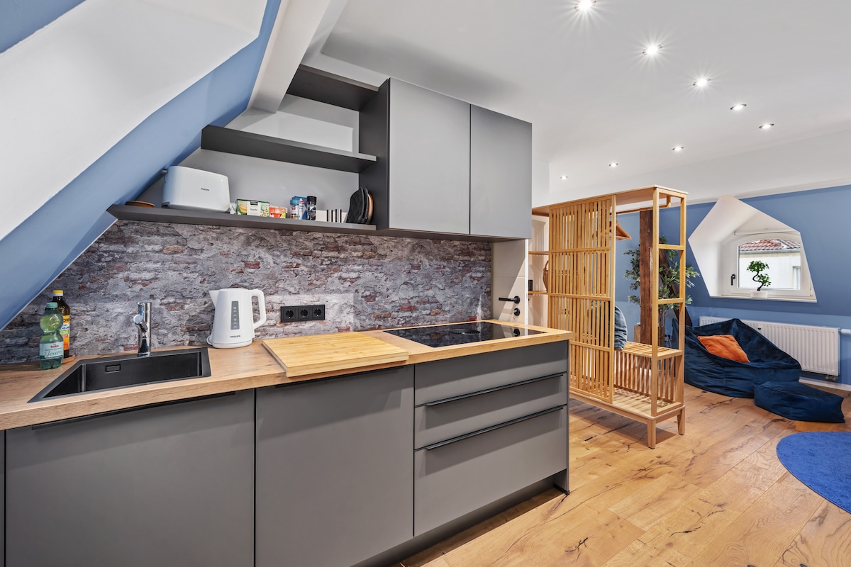 EDLER WOHNRAUM Vár rád a tökéletes szállás Zwickauban! Csendes elhelyezkedés, stílusos kényelmi szolgáltatások – és rugalmasan, önálló bejutással érkezhetsz. Modern stúdióapartmanra számíthatsz teljesen felszerelt konyhával, kiváló minőségű nappalival és kényelmes Emma ággyal (180x200 cm). Élvezd a gyors Wi-Fi-t, a tágas kertet, és pihenj a békés elővárosi környezetben. Közvetlenül a ház előtt ingyenes a parkolás. Foglalj most egy felejthetetlen élményért!
