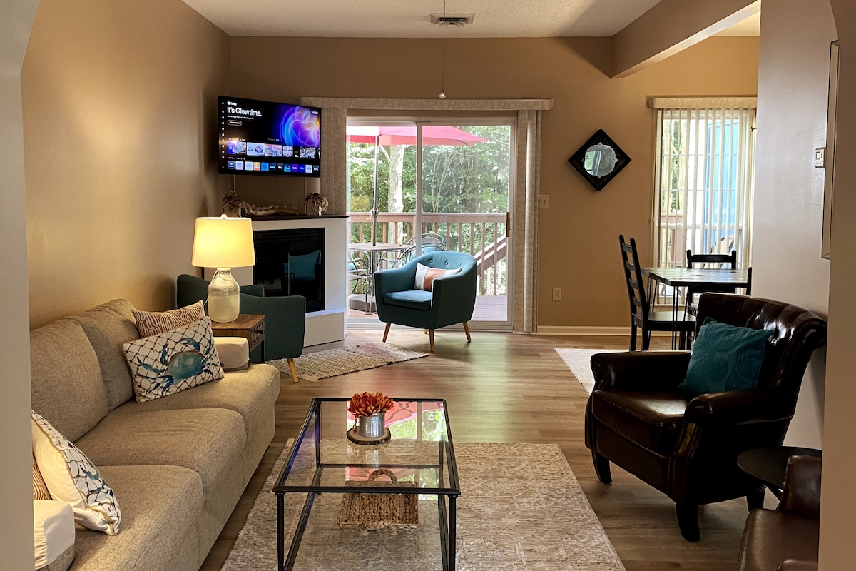 A gyönyörű Kingsmill üdülőhelyen található ez a bájos két hálószobás, két fürdőszobás lakás, amely lenyűgöző szezonális kilátást nyújt a tóra, és mindössze néhány percre található a CW-től, a Busch Gardens-től, a vízi vidékről, William és Maryand és más Williamsburgi látnivalóktól. A Kingsmill összes kényelmi szolgáltatása nem tartozik ide, mivel szigorúan a Kingsmill lakosainak szólnak. A vendégek hozzáférhetnek a gyógyfürdőhöz és a Mill Coffee House-hoz, amely sétatávolságra van a lakástól, és minden nap reggelit és ebédet szolgál fel.