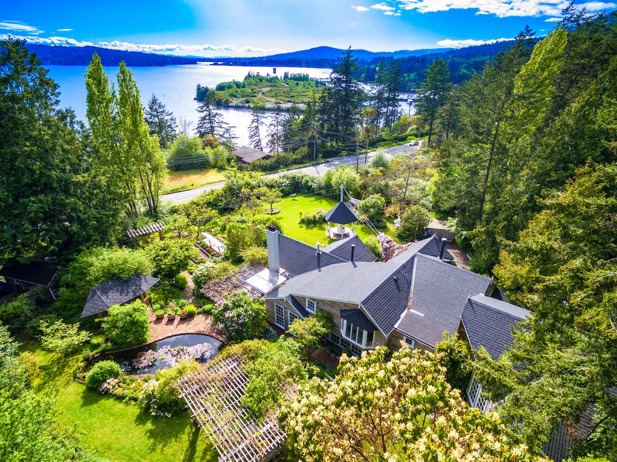 A truly unique treehouse perched 30 feet high among the trees. This amazing structure is attached to 3 large cedars and 1 giant maple using advanced tree tabs that allow the trees to sway gently, providing a natural and immersive experience. The large deck offers stunning views across the Salish Sea to the Mountains of Washington state. With all the modern amenities you could need, it's the perfect place to relax and unwind. Experience the magic and wonder of treehouse living for yourself!